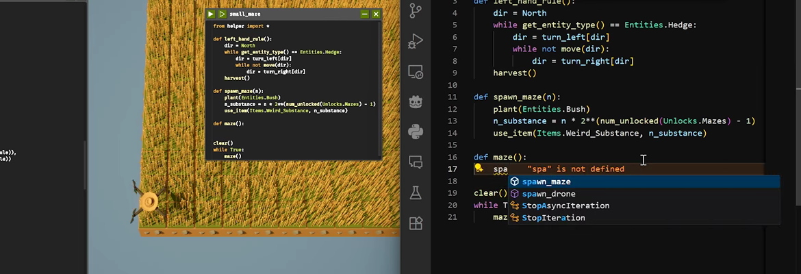 Program and optimize a drone to automate a farm and watch it do the work for you. Collect resources to unlock better technology and become the most efficient farmer in the world. Improve your problem solving and coding skills.