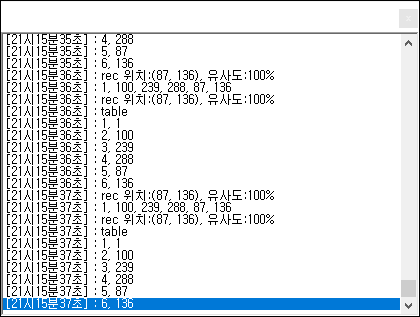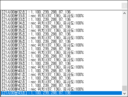 이미지를 발견하면 이미지맥스 로그창에 원점기준좌표x, y와 유사도 기록되는것을 알수있니다.